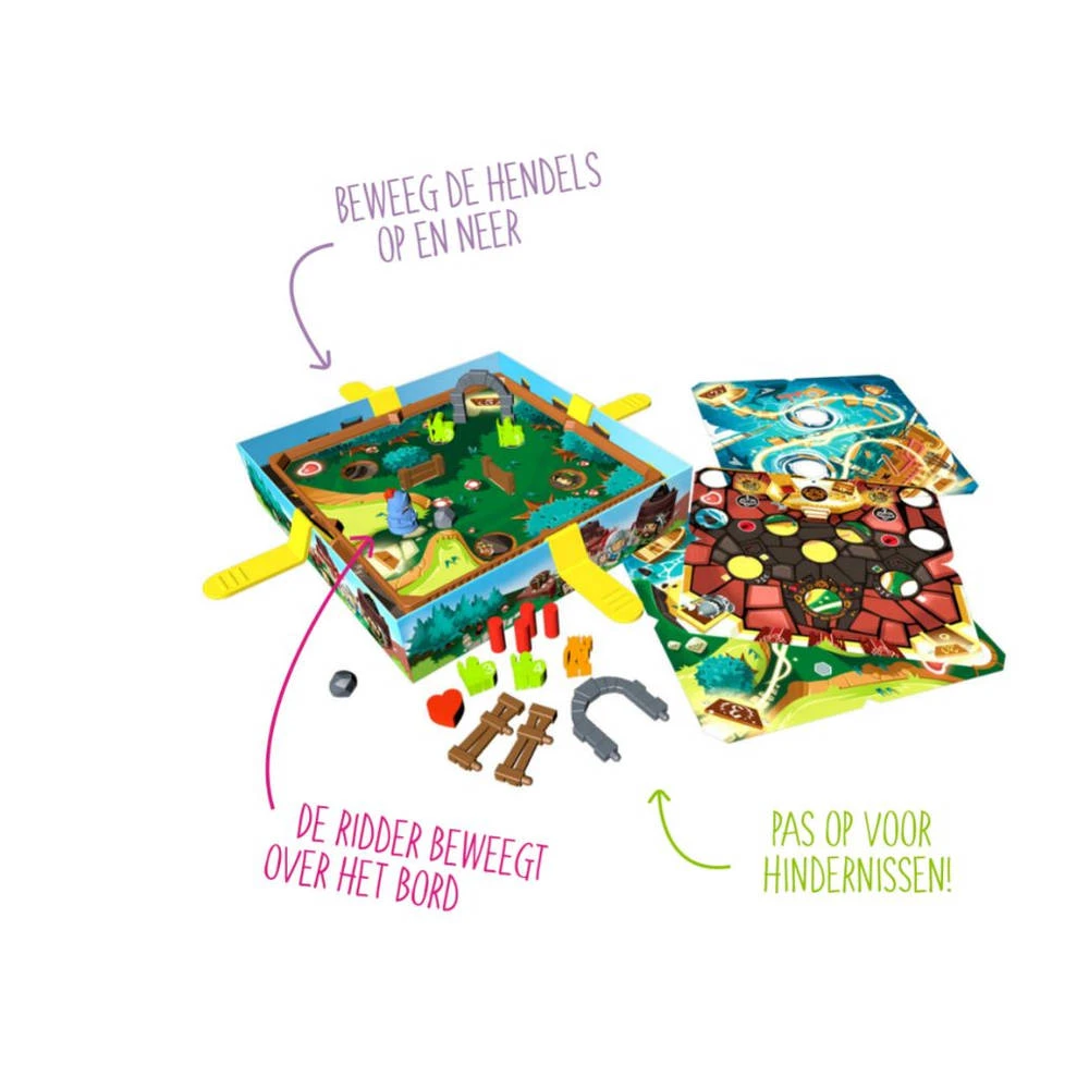 Dit spannende Slide Quest spel is genomineerd voor speelgoed van het Jaar 2019! De slechteriken hebben de controle over het prachtige koninkrijk overgenomen in Slide Quest en het is een puinhoop. Je moet de wereld redden, en snel! Leid samen met je vrienden deze dappere, rollende ridder door het turbulente avontuur, bezaaid met valkuilen en wendingen. Slide Quest is een fantastisch bordspel waarbij je probeert om de ridder te helpen om het einde van elke kaart te bereiken en daarbij valstrikken en obstakels te vermijden. Gebruik de hendels, die je aan de doos vastmaakt, om de ridder te laten schuiven, maar let wel op. Er zijn namelijk diverse hindernissen, bewakers en een schurk die jouw weg moeilijk maken en jouw levensteller laten dalen. Er zijn in totaal twintig kaarten, vier verschillende werelden met elk vijf kaarten, die je kunt spelen. Om het spel te winnen probeer je de ridder veilig en succesvol door een wereld van vijf kaarten, bij een kleine queeste, of de volledige twintig kaarten, grote queeste te loodsen en het koninkrijk te redden. De moeilijkheidsgraad wordt hoger naarmate je van de ene naar de andere wereld gaat. Als je levensteller echter op nul komt, dan verlies je het spel.