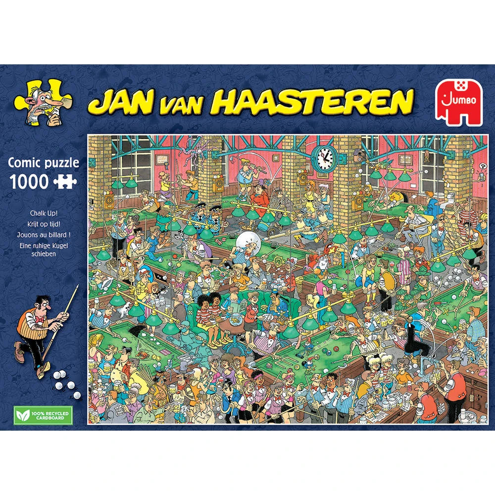 Voor een middagje vermaak is de Jan van Haasteren familie dit keer te vinden in een poolbar. In deze chaotische bar zul je aan een goed potje poolen helaas niet toe komen, maar om lachend een puzzel te maken zit je precies goed!