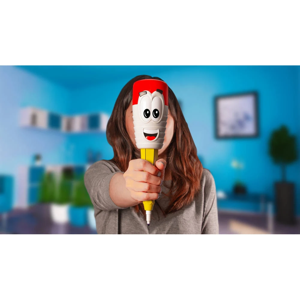 - Inhoud: 1x Pen Silly met twee moeilijkheidsgraden van vibratie, 1x zandloper (1 minuut), 75 beschrijvingskaarten, 75x onderwerpkaarten, 2x kleurstiften en 2x uitwisbare tekentablets