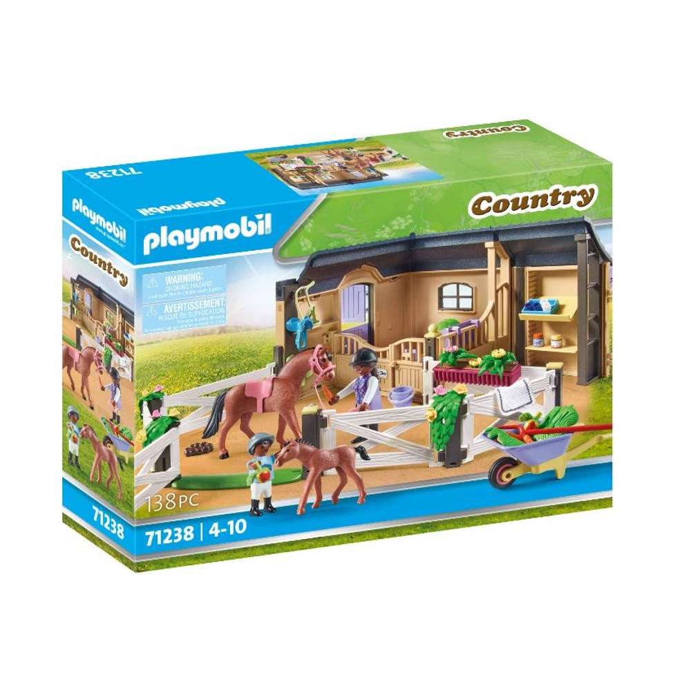 Verzorg en train je paard met deze prachtige PLAYMOBIL Country manege speelset. De set bevat een bouwbare manege, twee figuren, een paard, een veulen en vele leuke accessoires. PLAYMOBIL-nr. 71238