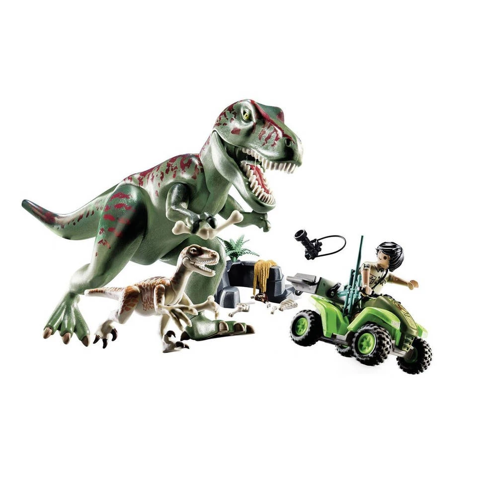Met deze PLAYMOBIL Dinos speelset vallen er spannende avonturen te beleven. De onderzoeker is op de vlucht voor de T-Rex en Deinonychus. PLAYMOBIL-nr. 70632