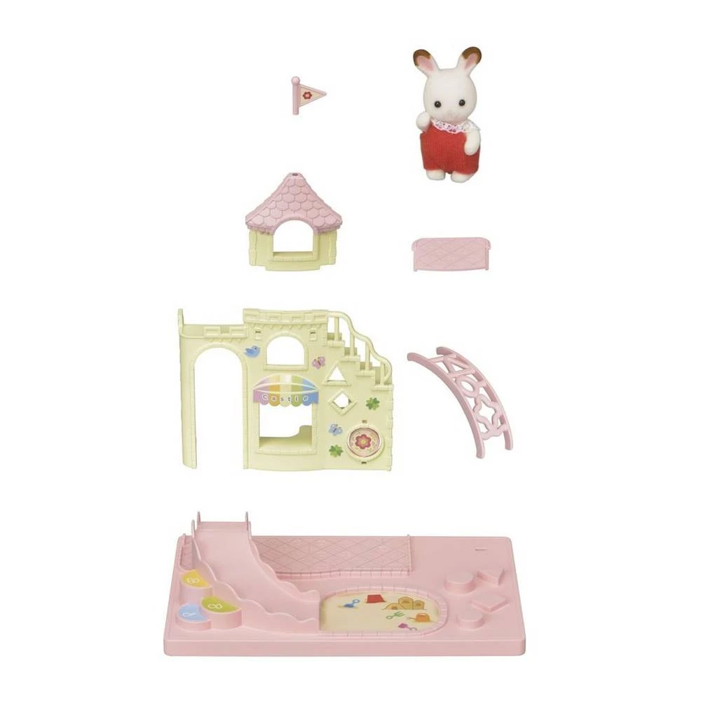 Het is altijd één en al pret in het Sylvanian Families babykasteel! Het kasteel is uitgerust met een glijbaan, ladder, zandbak en andere leuke babyspeeltjes.